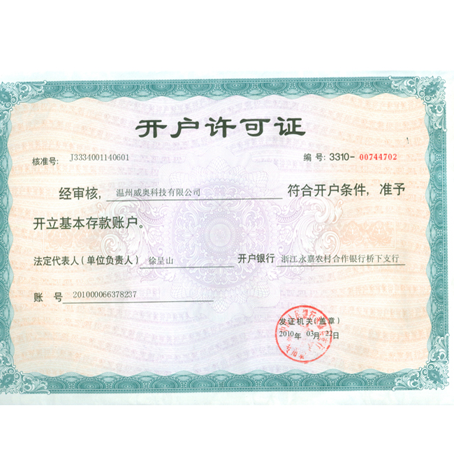 榮譽(yù)名稱:開(kāi)戶許可證